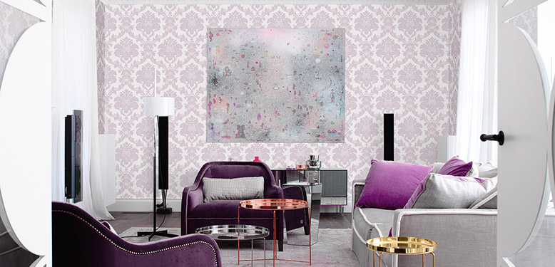 วอลเปเปอร์ติดผนังลายหลุยส์สีครีมม่วง รหัส 71209