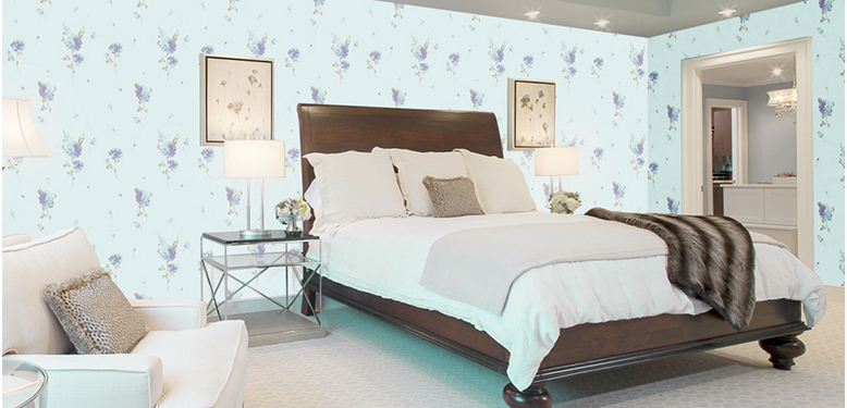 วอลเปเปอร์ติดผนังลายดอกไม้พื้นเรียบสีครีมฟ้ารหัส 71063